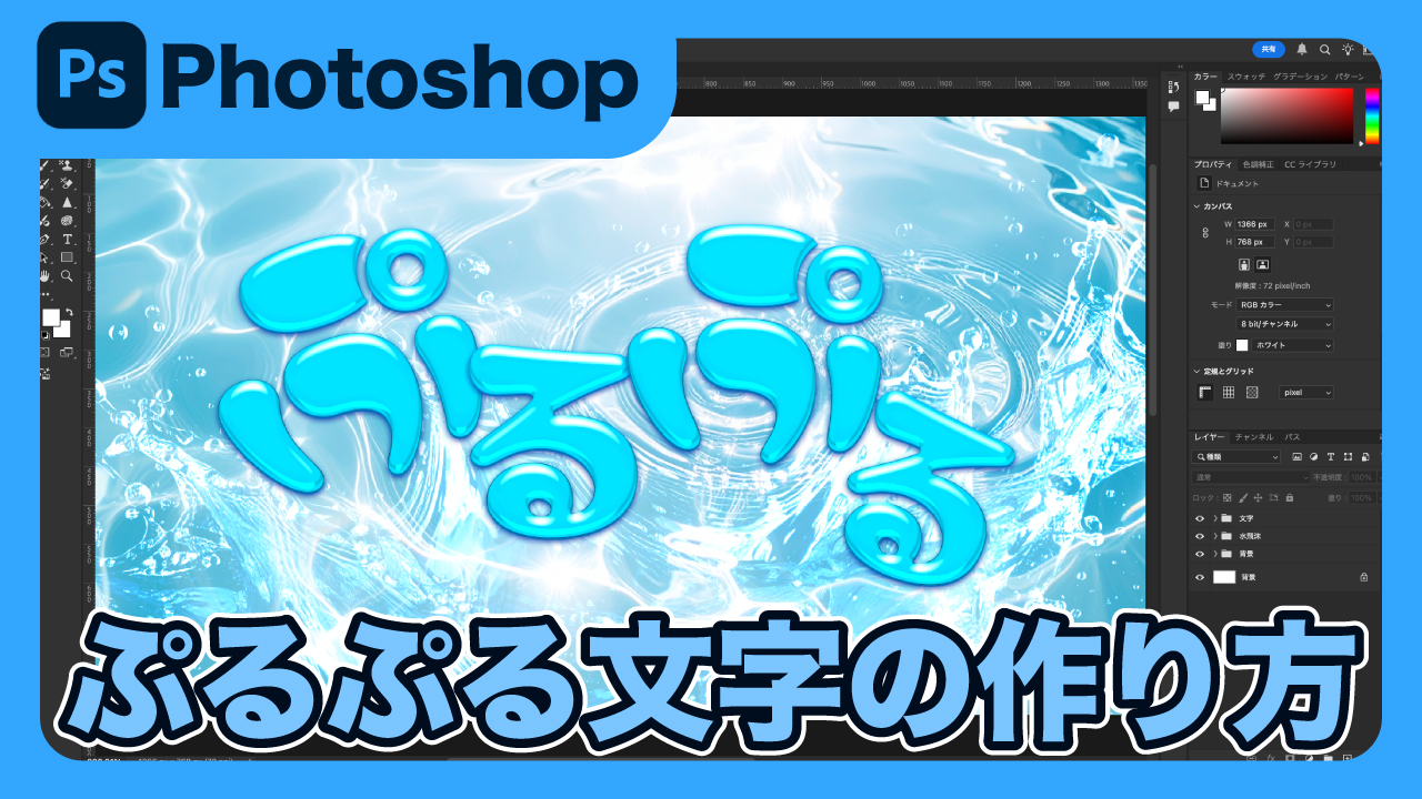 【Photoshop】フォトショップのレイヤースタイルで表現する、瑞々しいぷるぷる文字の作り方を解説します。